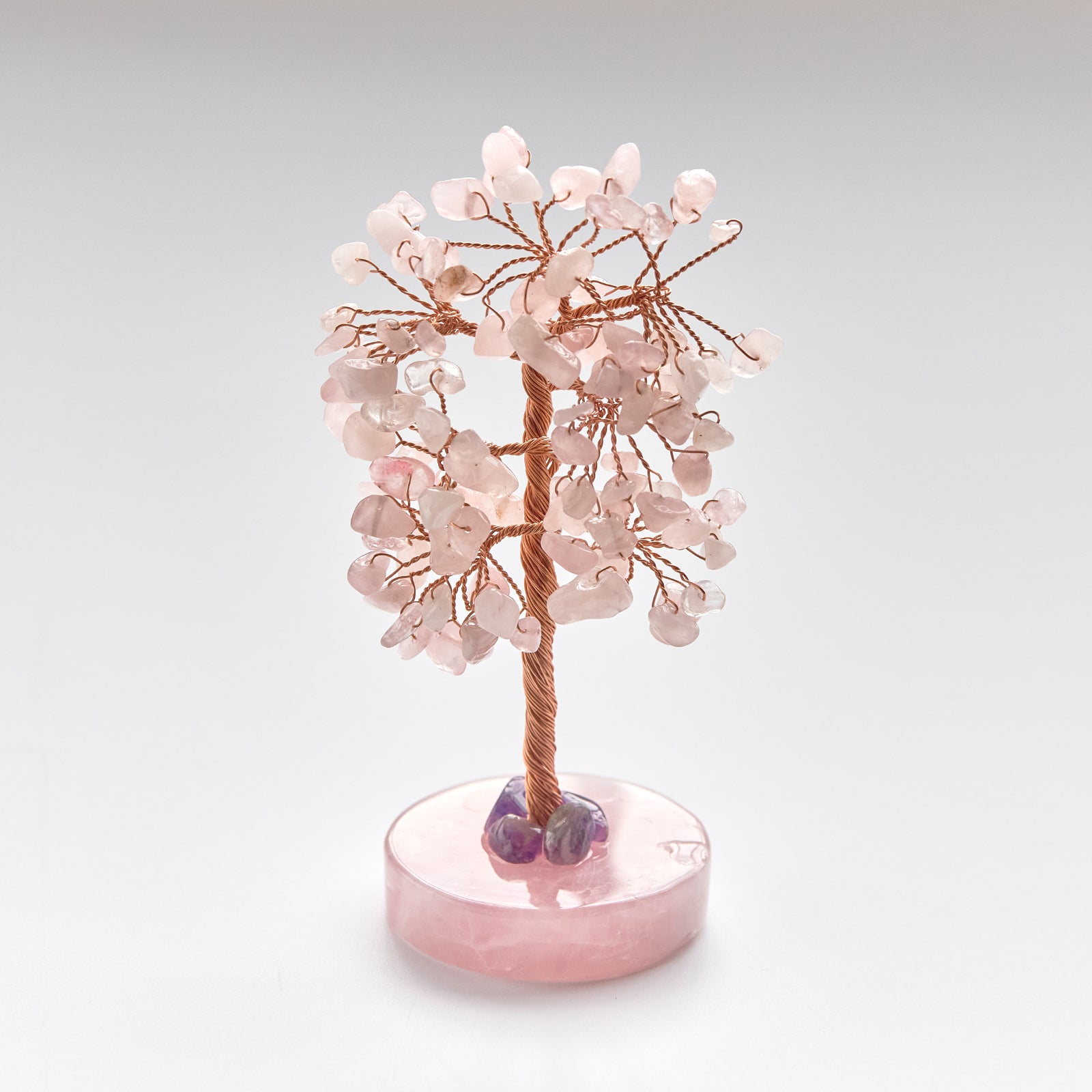 The Tree of Love & Abundance is a graceful fusion of beauty and energy, rooted in the soft, nurturing frequency of rose quartz. Each delicate pink stone—known as the crystal of unconditional love—gently harmonizes the heart and fills your environment with warmth, compassion, and emotional balance.