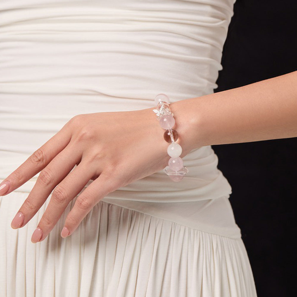 UNCONDITIONAL LOVE The soft pink Rose Quartz beads wrap your aura in a blanket of compassion. This is not just romantic love, but self-love. It quiets the inner critic and soothes the heart chakra, creating a safe emotional space for your transformation to take place. It reminds you to be gentle with yourself as you grow.