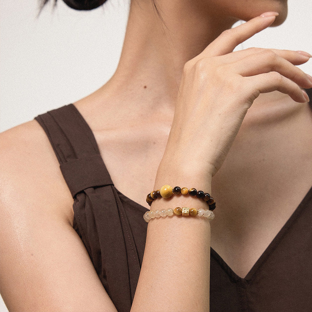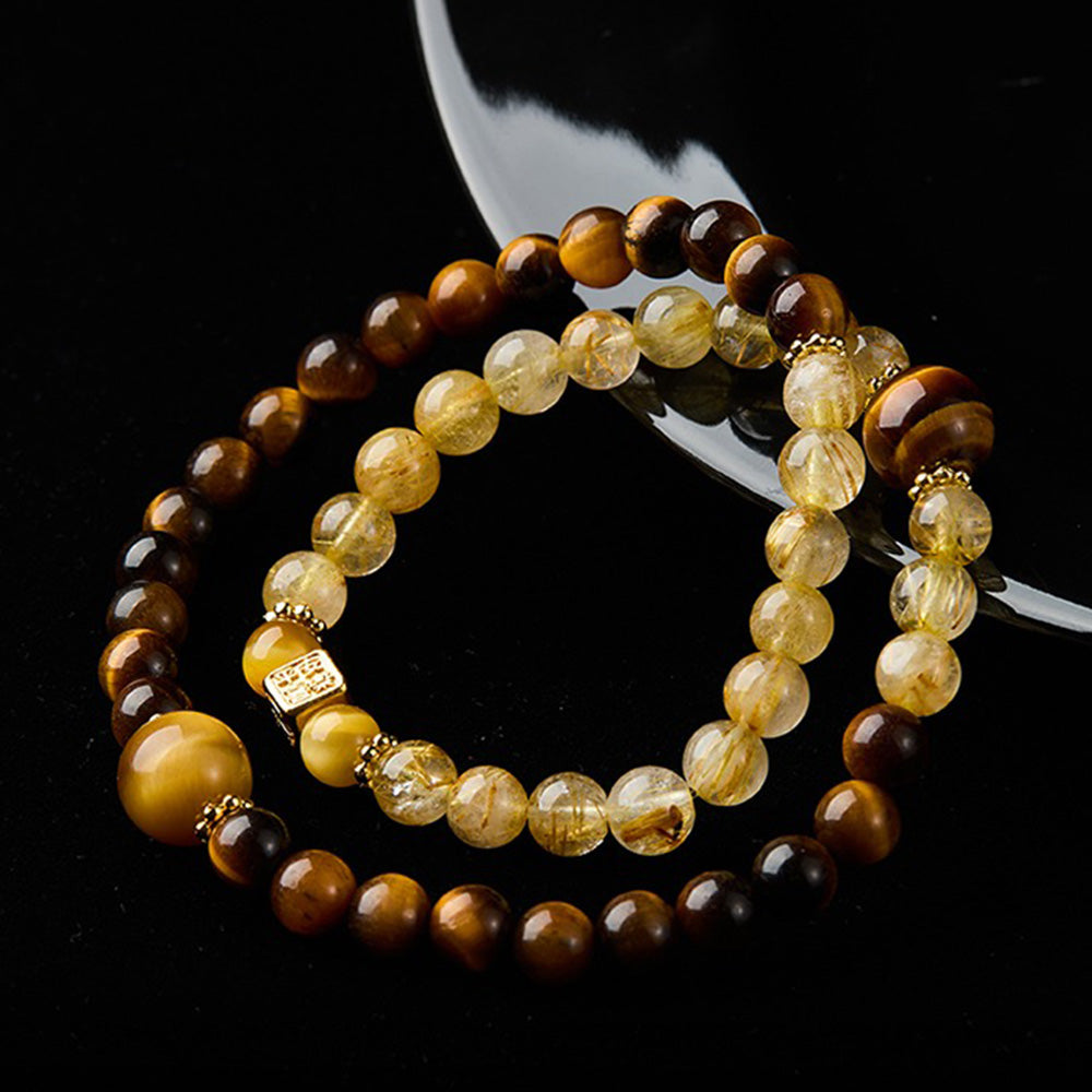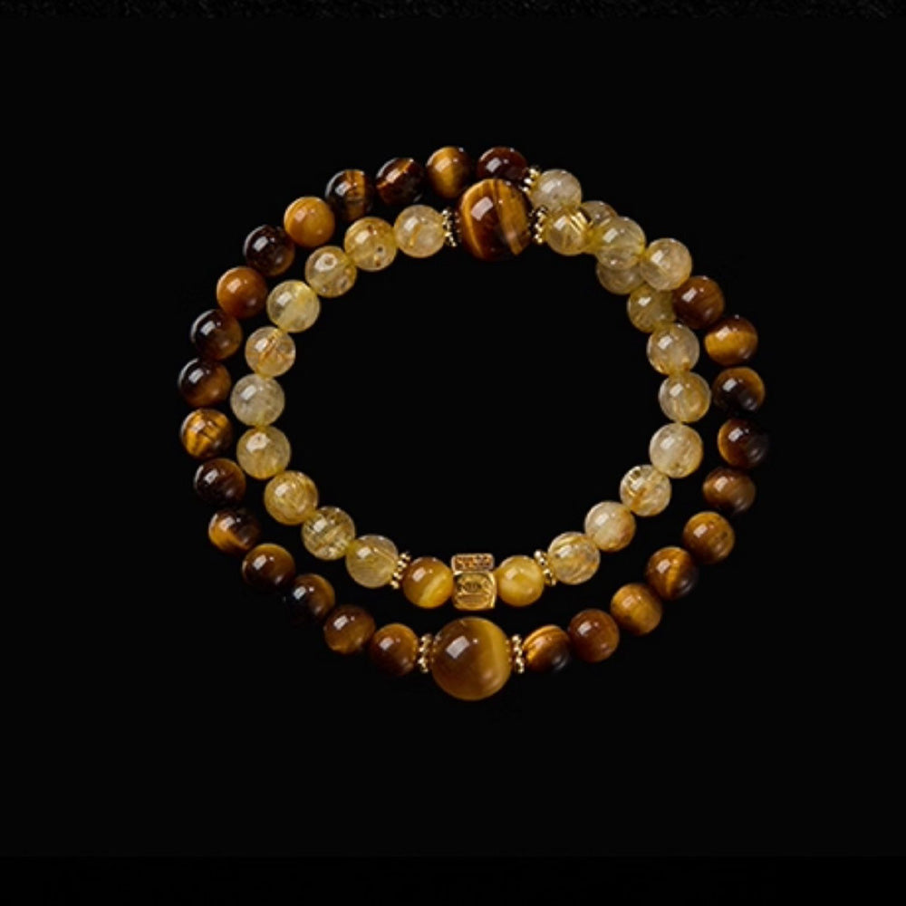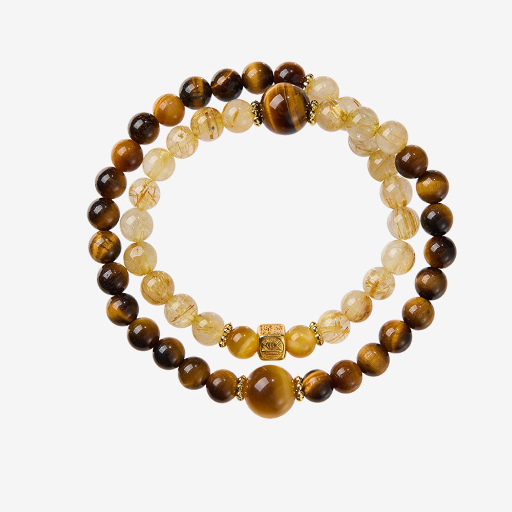 COURAGE (Tiger Eye) While Rutile brings high energy, Tiger Eye provides the earthly stamina to sustain it. Known as the "All-Seeing Eye," it offers protection against negative energies and the jealousy of others. It shifts your mindset from "wishing" to "doing," giving you the confidence to seize the opportunities that the Rutilated Quartz attracts.