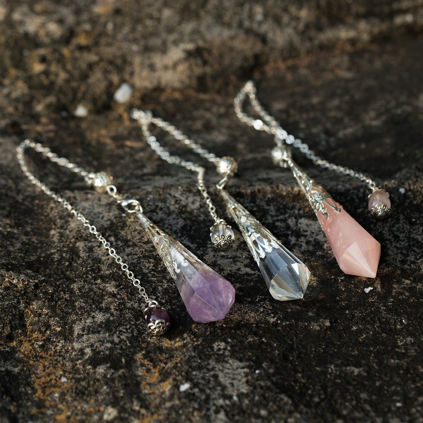 Hold the chain between your fingers, steady your breath, and ask your question with a clear, calm intention. Allow the pendulum to move naturally and interpret its rhythm as guidance from your higher self. Cleanse regularly with moonlight or selenite.