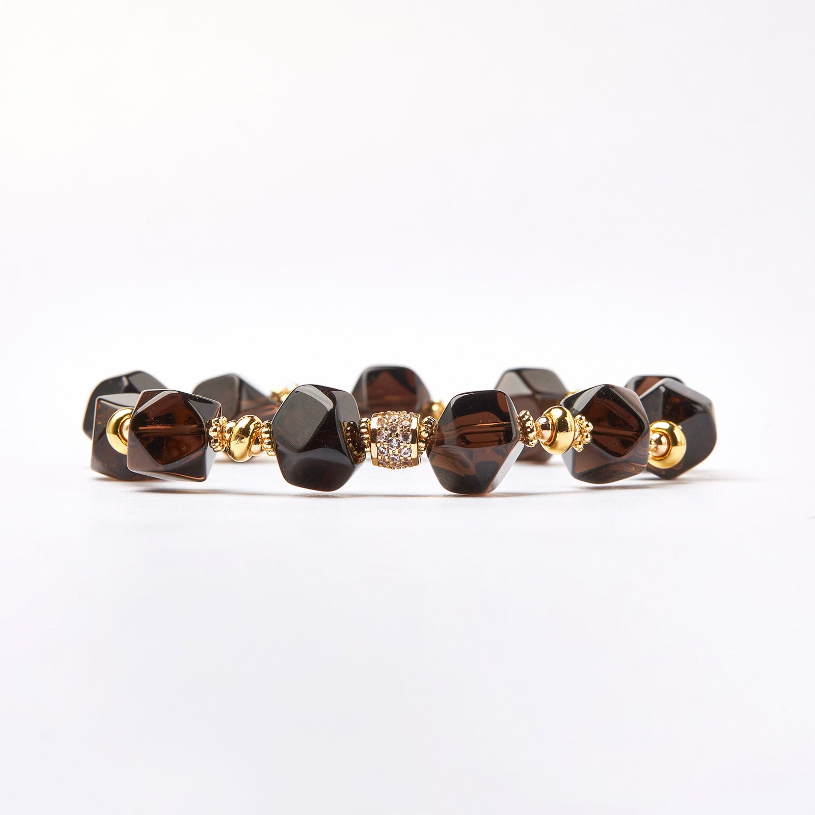 The Golden Ember Smoky Quartz Bracelet is crafted for those seeking calm strength and quiet determination. Each faceted smoky quartz bead captures light in soft, earthy flashes—like embers glowing in the dark—reminding you to root deeply while moving forward with clarity. Known as one of nature’s most powerful grounding stones, smoky quartz gently dissolves tension, clears mental fog, and anchors your energy into a balanced, empowered state.